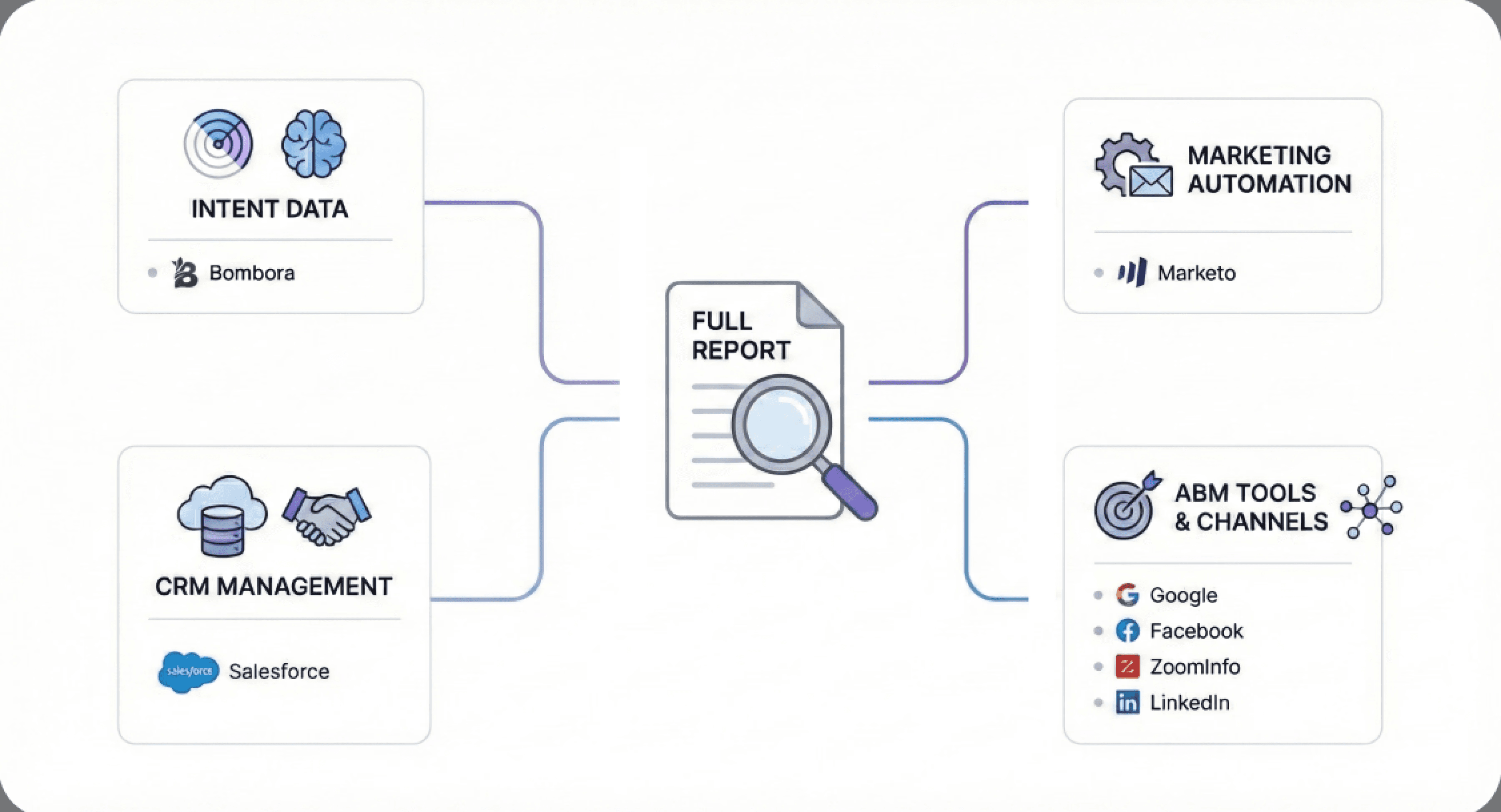 "Anne's daily workflow involved multiple platforms including Bombora for intent data, Marketo for marketing automation, Salesforce for CRM management, and various ABM tools, highlighting the fragmentation our solution needed to address."