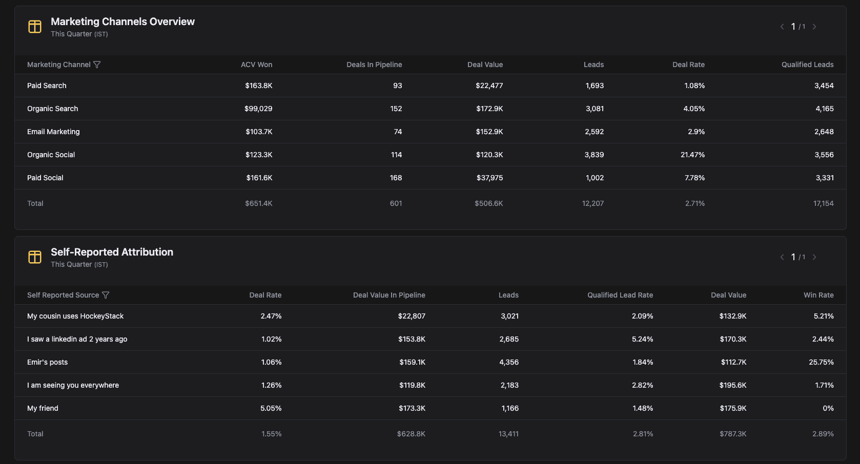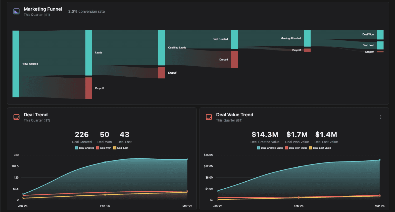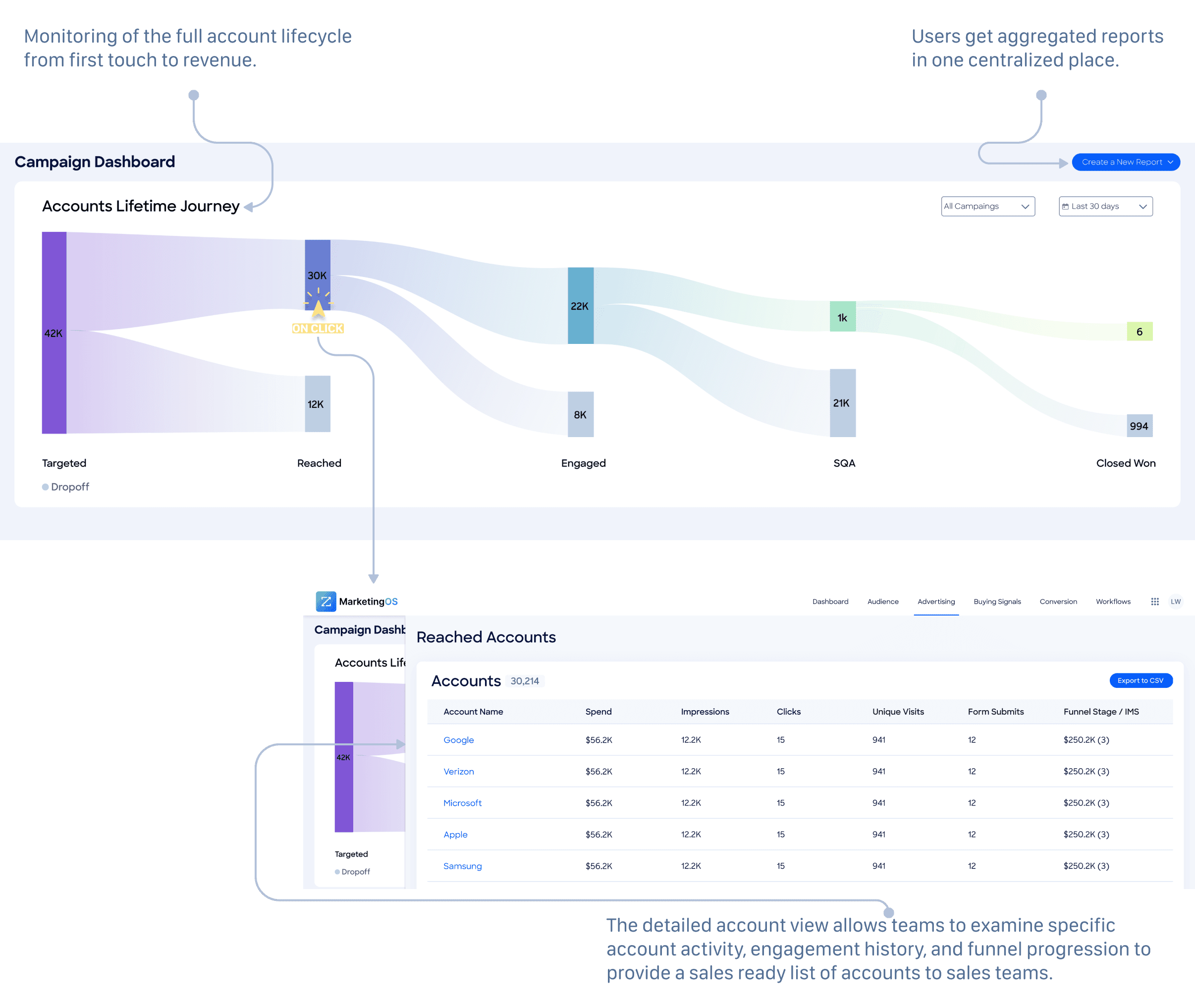 My focus was the Campaign Dashboard — giving marketing teams full visibility into campaign performance, from first touch to closed won.