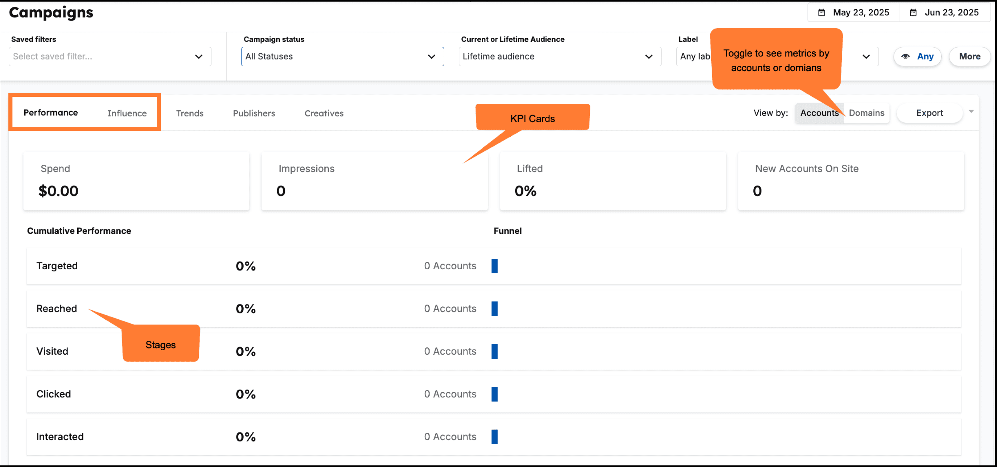 Goal: Report on funnel metrics for current campaigns