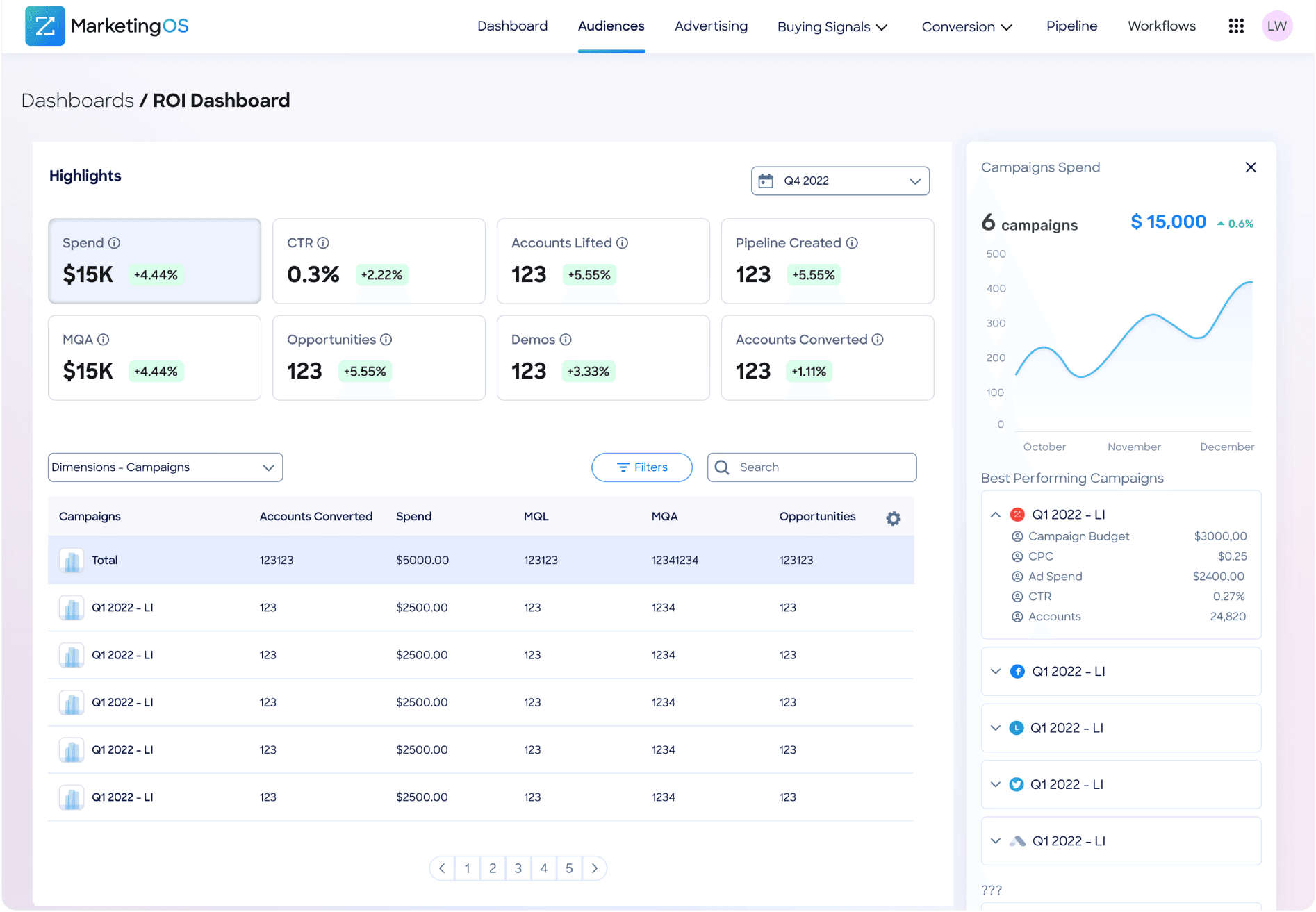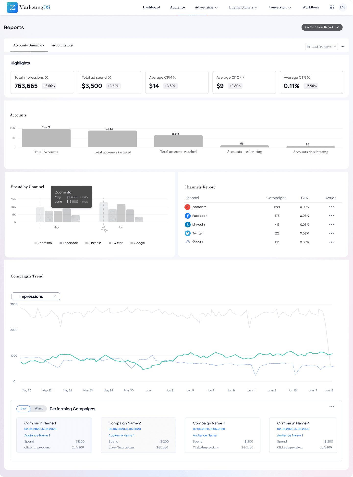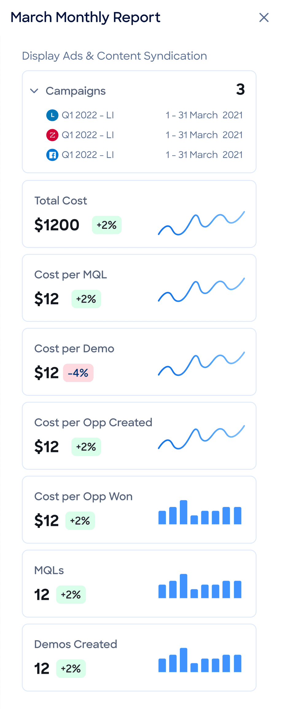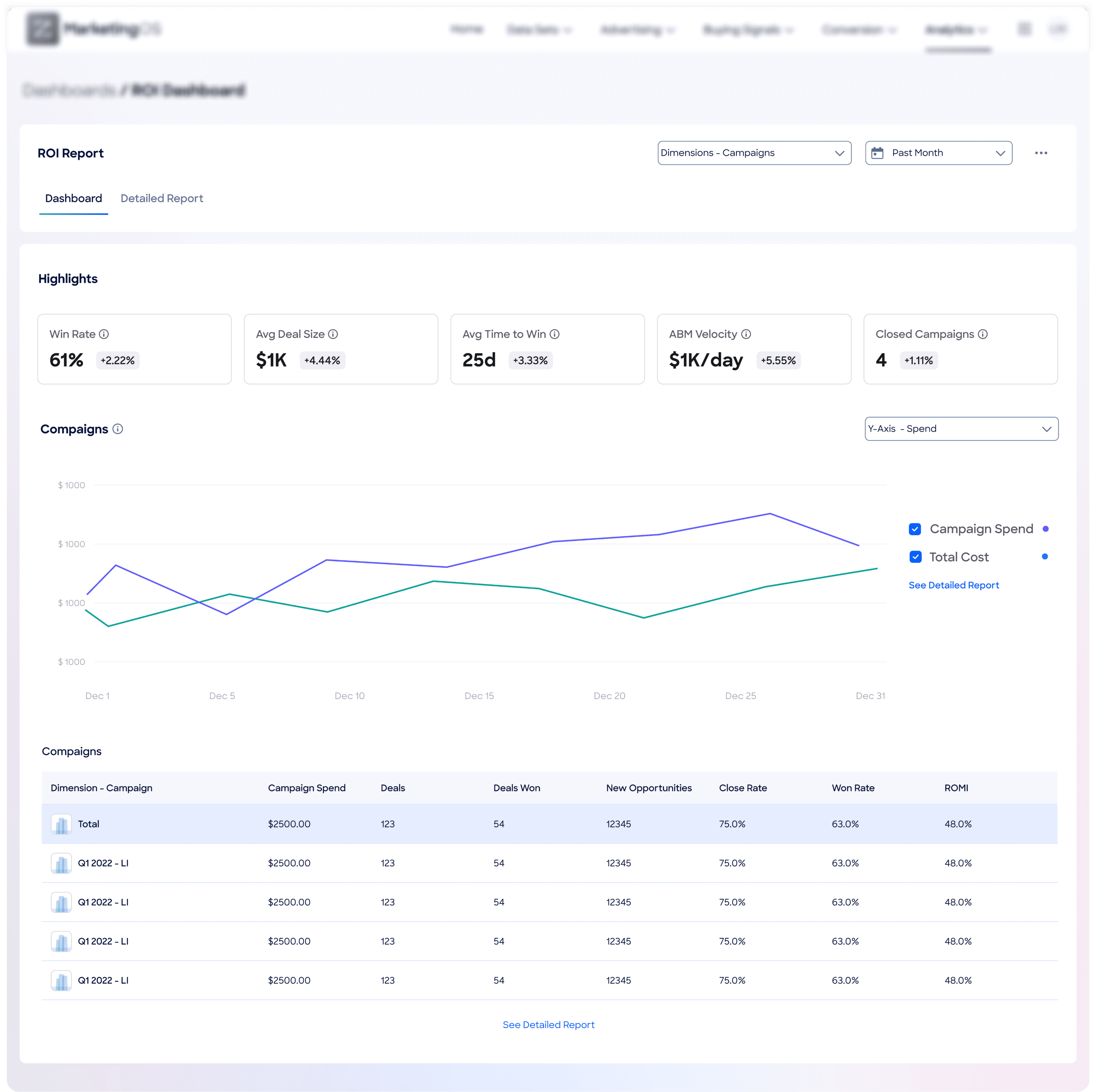 Campaign Lifecycle Overview: Provides strategic pipeline perspective with campaign attribution and ROI insights