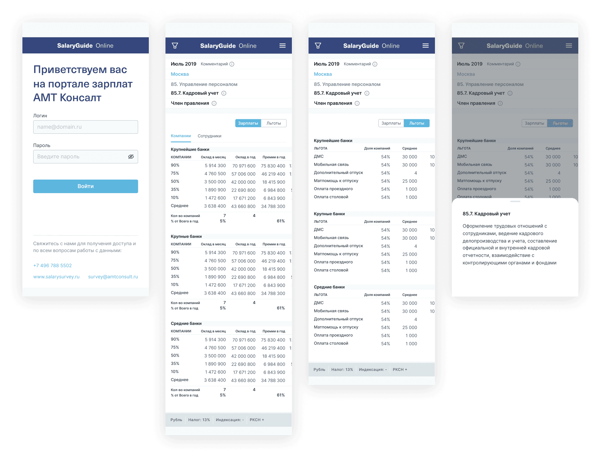 Salary Guide Online is a large-scale analytics platform that provides salary data across industries, positions, and regions in Russia. The main challenge was to design a user-friendly interface for complex data, ensuring that HR managers and business leaders could quickly generate reports without feeling overwhelmed by dense information and filtering options.