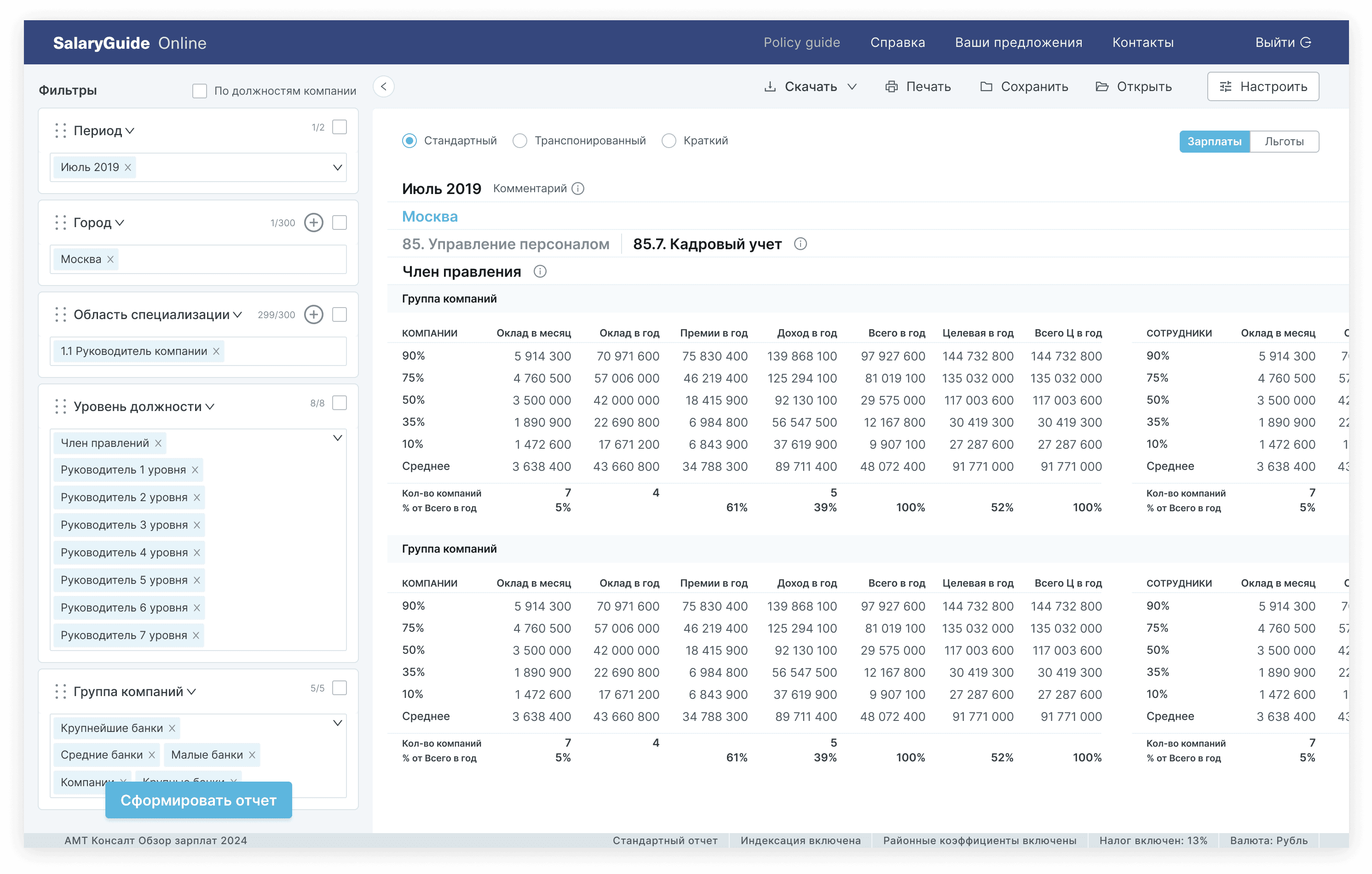 We restructured the product around a clear and modular workflow, focusing on step-by-step navigation, advanced yet intuitive filters, and role-based access. The interface allows users to seamlessly compare salaries by city, position, and company type, export reports, and save configurations. This approach reduced friction, increased engagement, and highlighted the platform’s analytical reliability.
